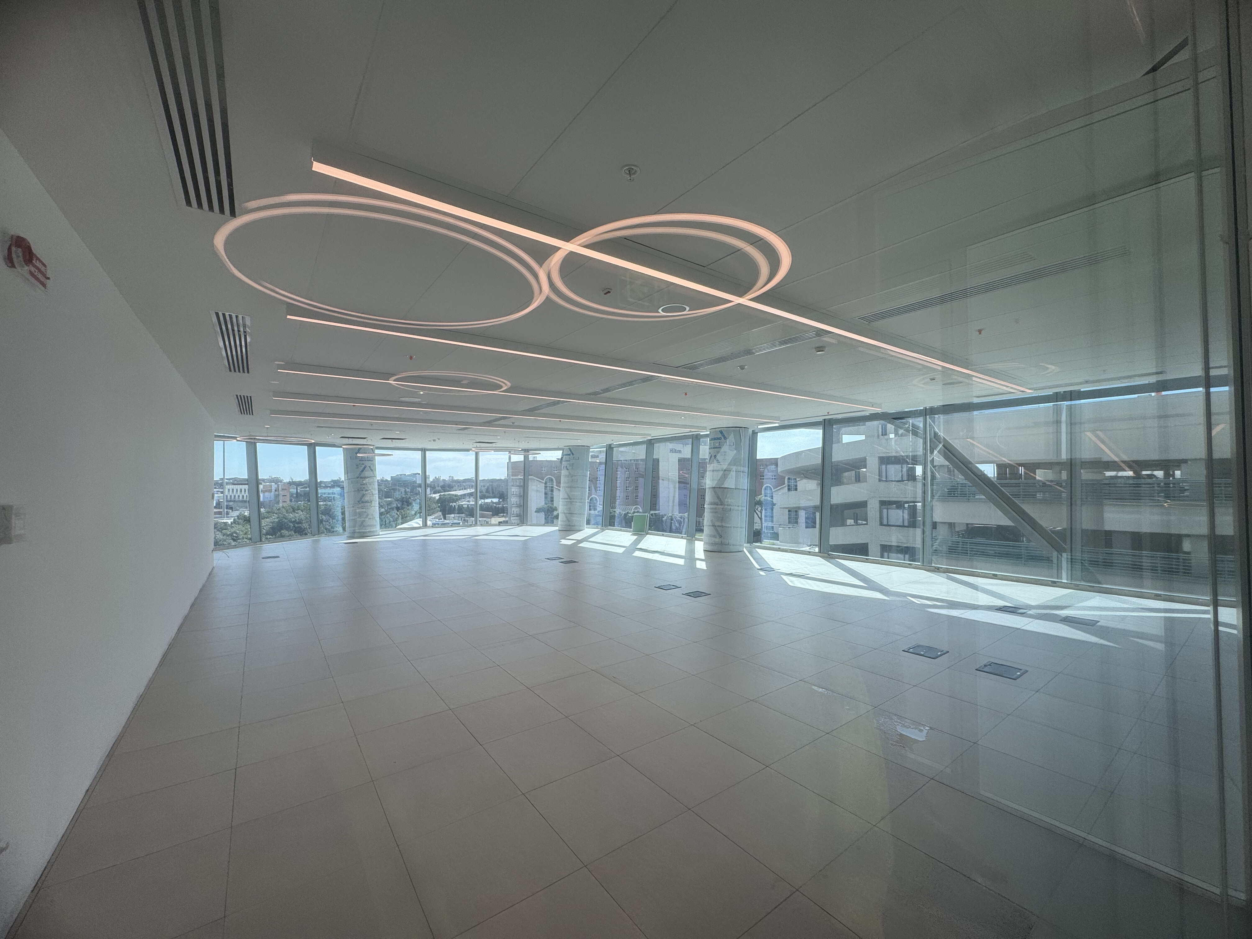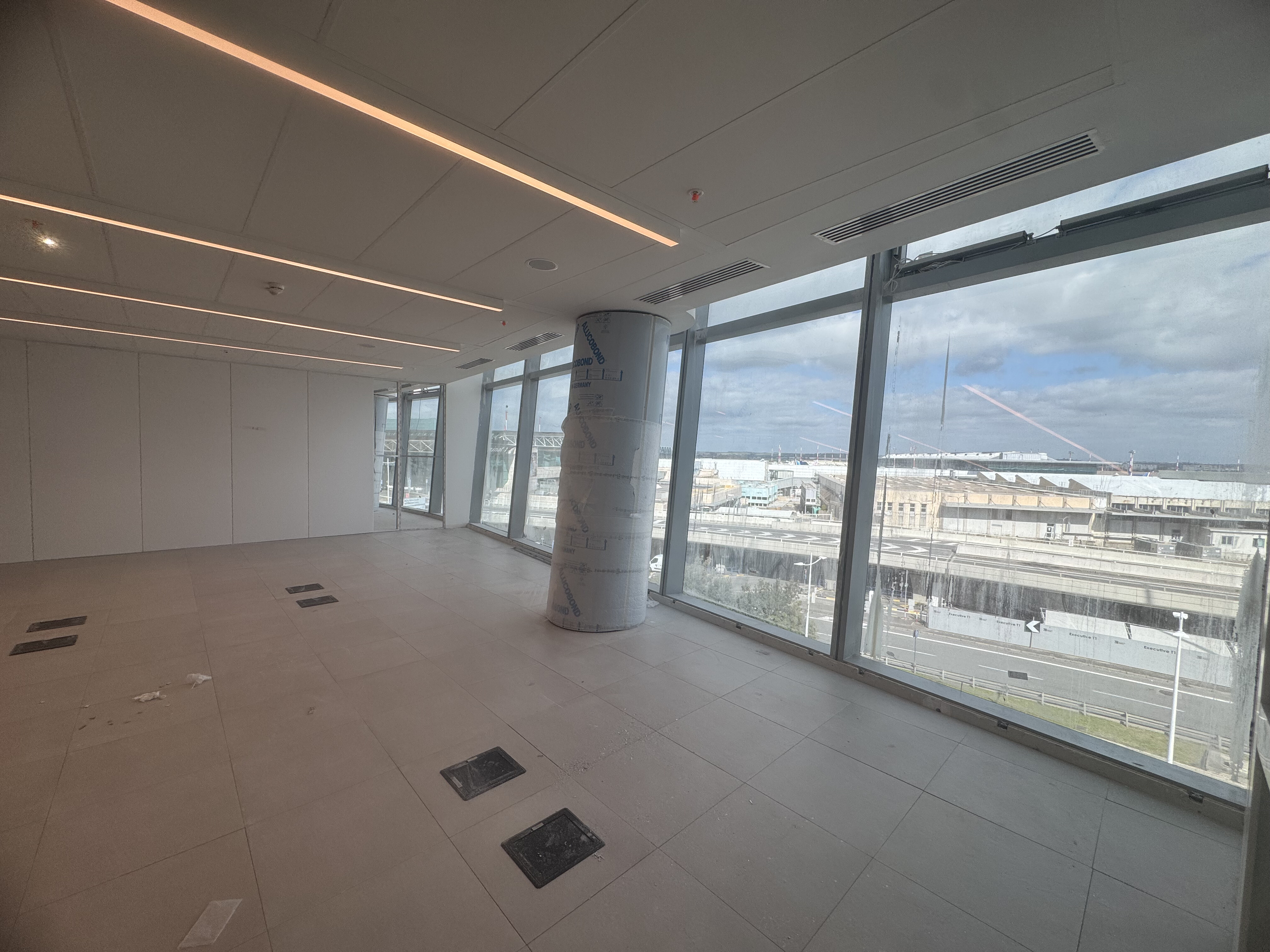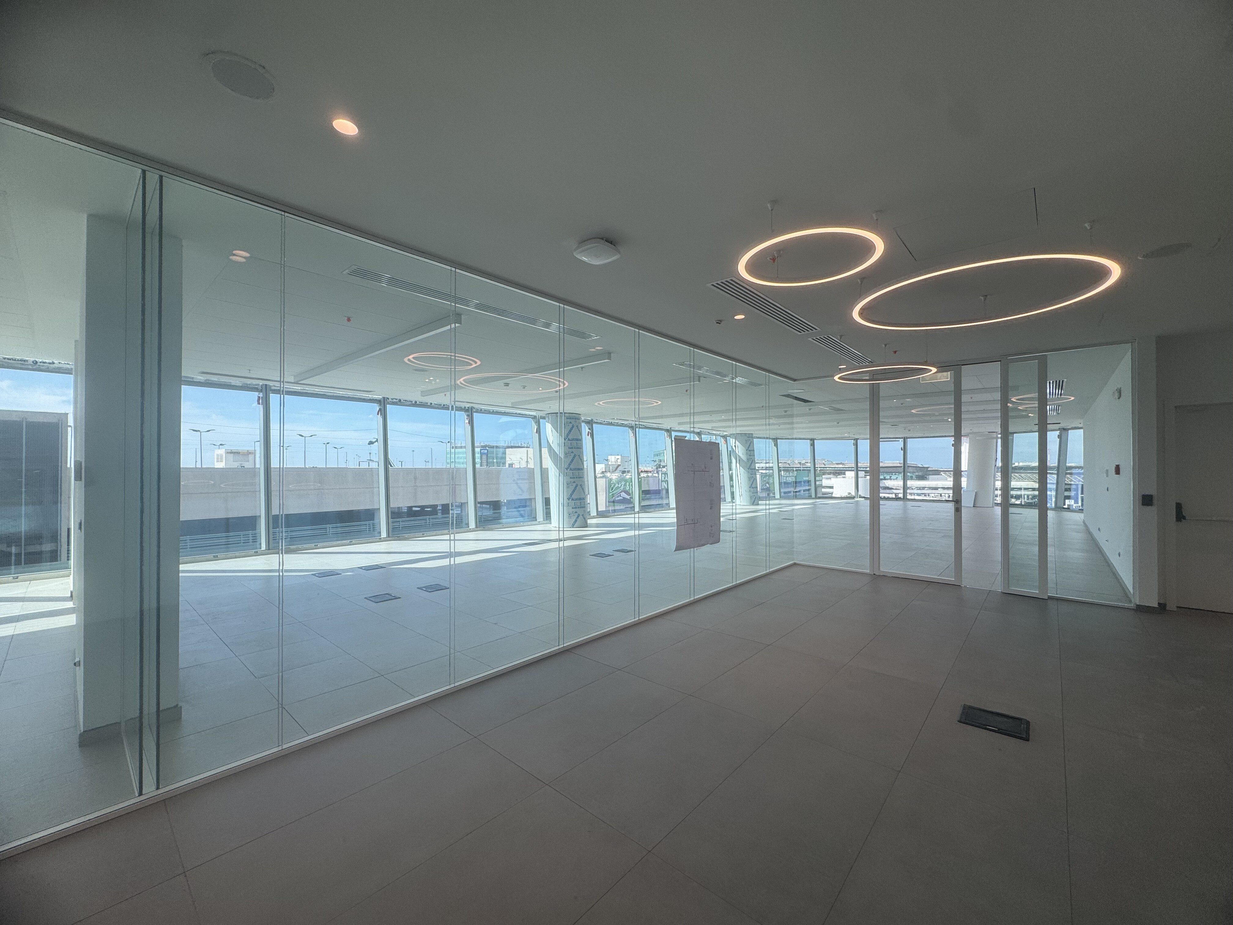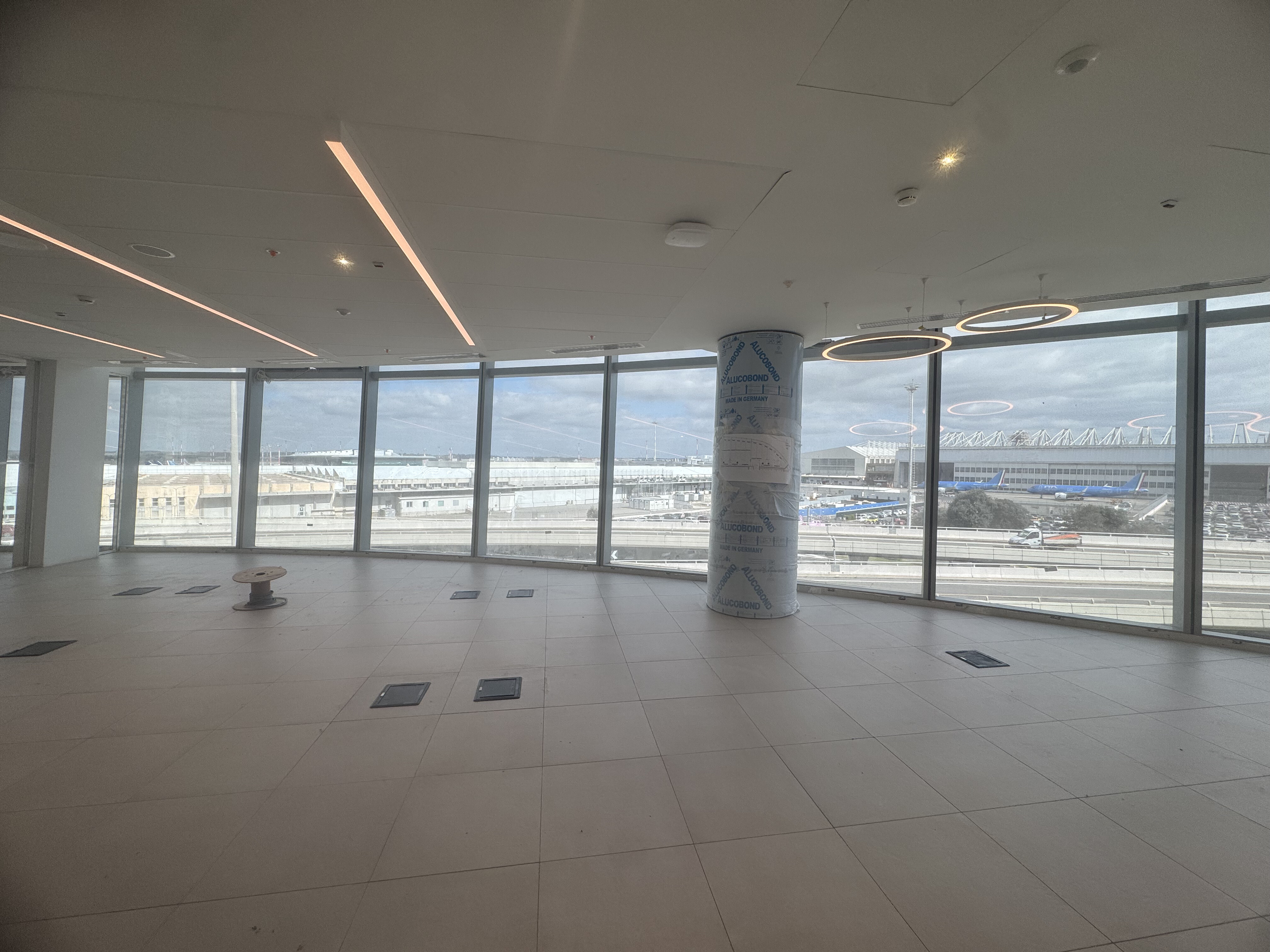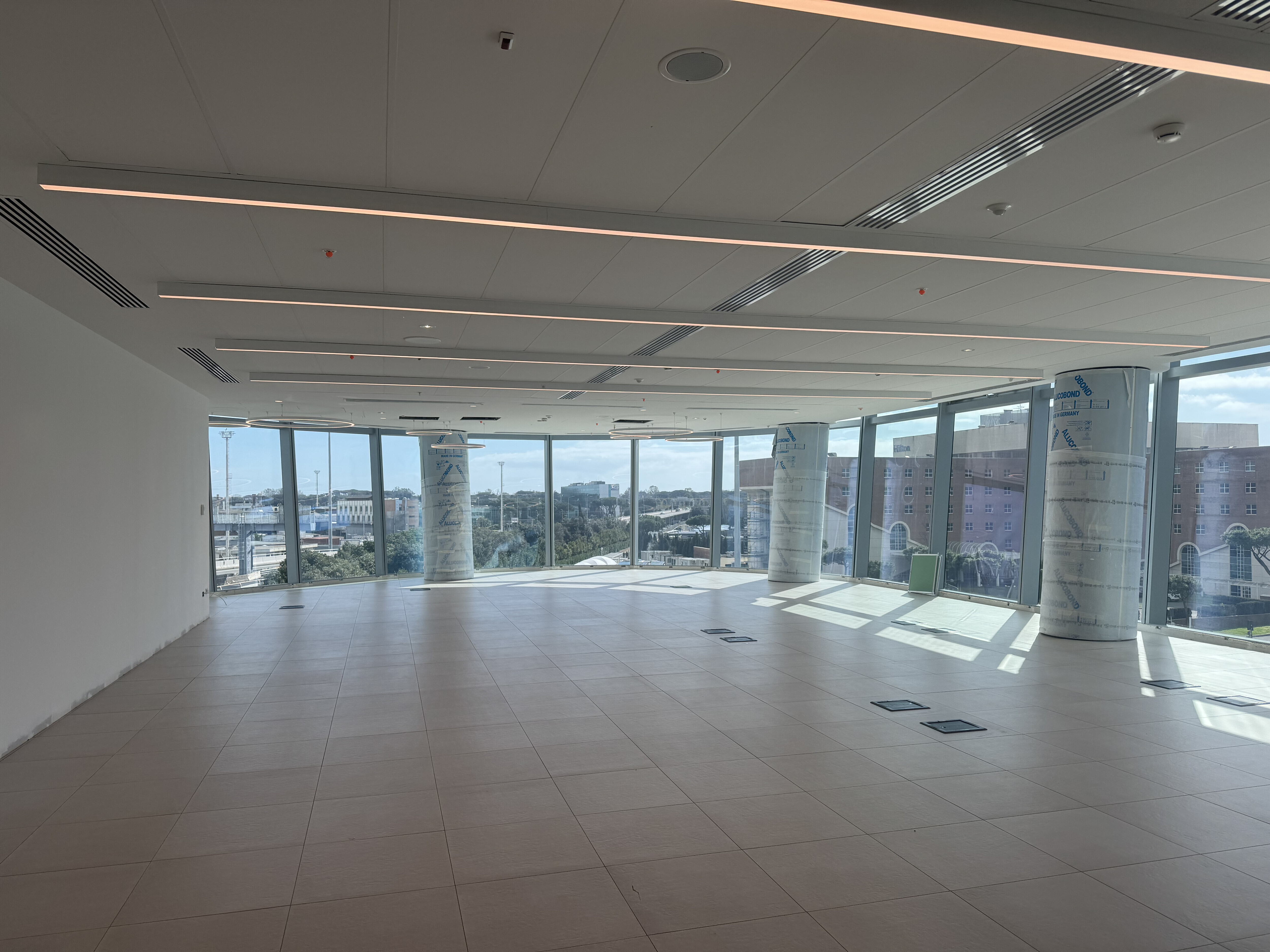 Ogni piano ospita spazi uffici di diverse metrature a partire da 50 Mq, completamente modulabili e personalizzabili per adattarsi alle esigenze di aziende di ogni dimensione. La progettazione interna prevede che impianti tecnologici e collegamenti verticali siano concentrati nel nucleo centrale dell’edificio, consentendo così lo sviluppo di ampi spazi perimetrali luminosi, pensati per massimizzare l’ingresso di luce naturale e offrire piacevoli affacci sull’area aeroportuale di Roma Fiumicino.
