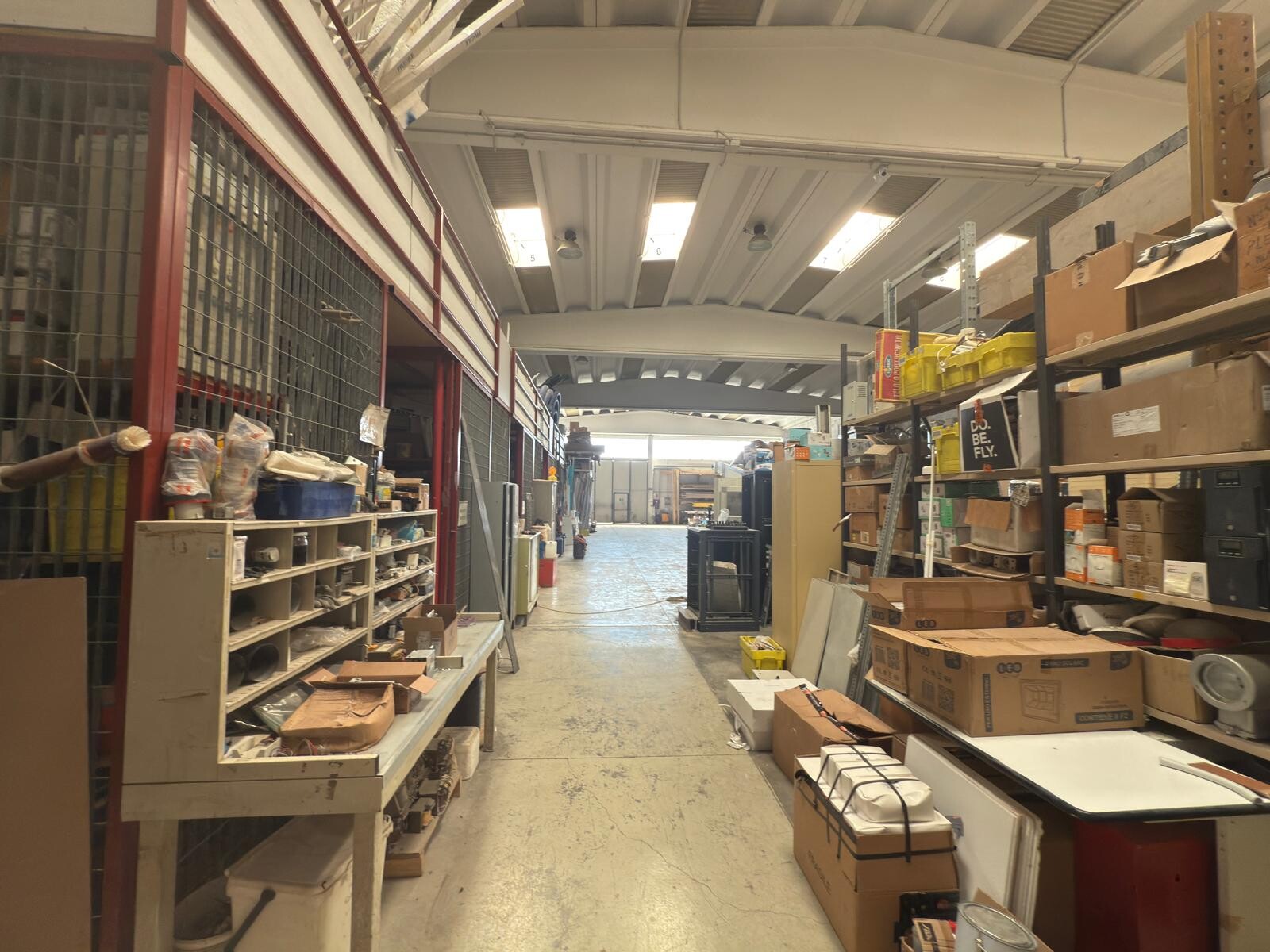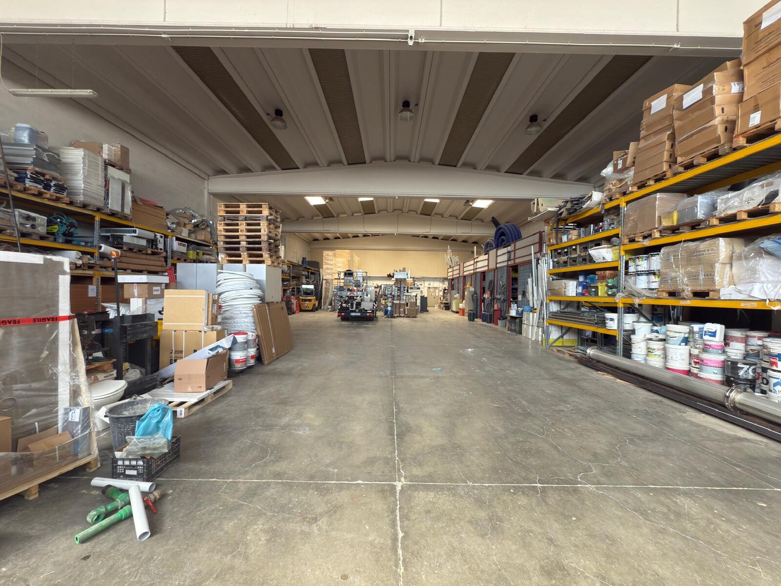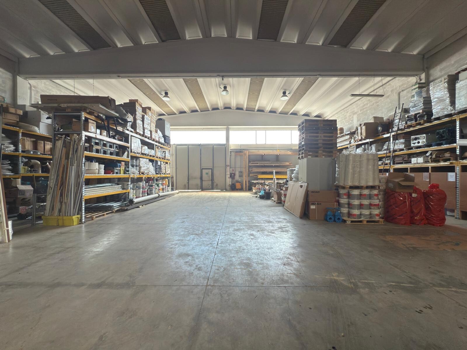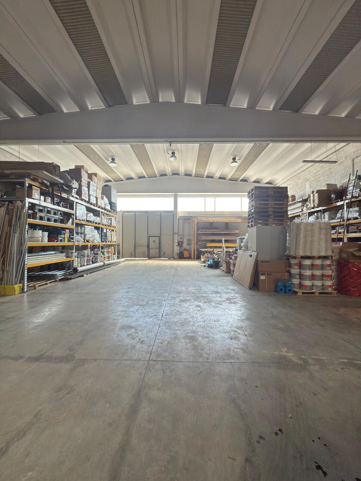 Capannone ad uso magazzino di circa 800 mq con un'altezza sotto trave di 6,40 metri, ideale per lo stoccaggio merci e l'utilizzo di mezzi industriali.