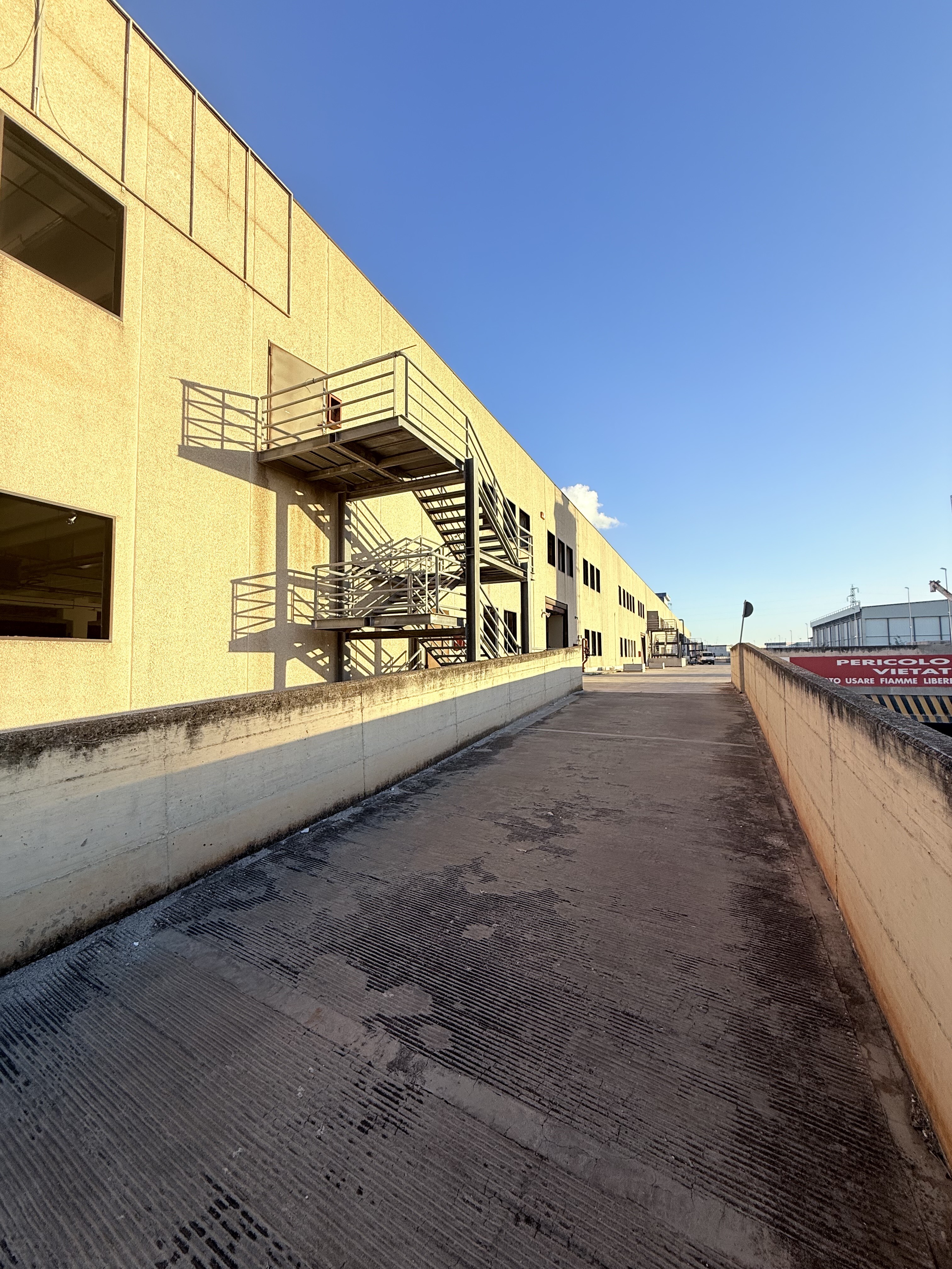 Si propongono in locazione porzioni di capannone poste al piano primo, con superfici rispettivamente di 1.200 mq e 1.800 mq, caratterizzate da un’altezza sotto trave di circa 4 metri.