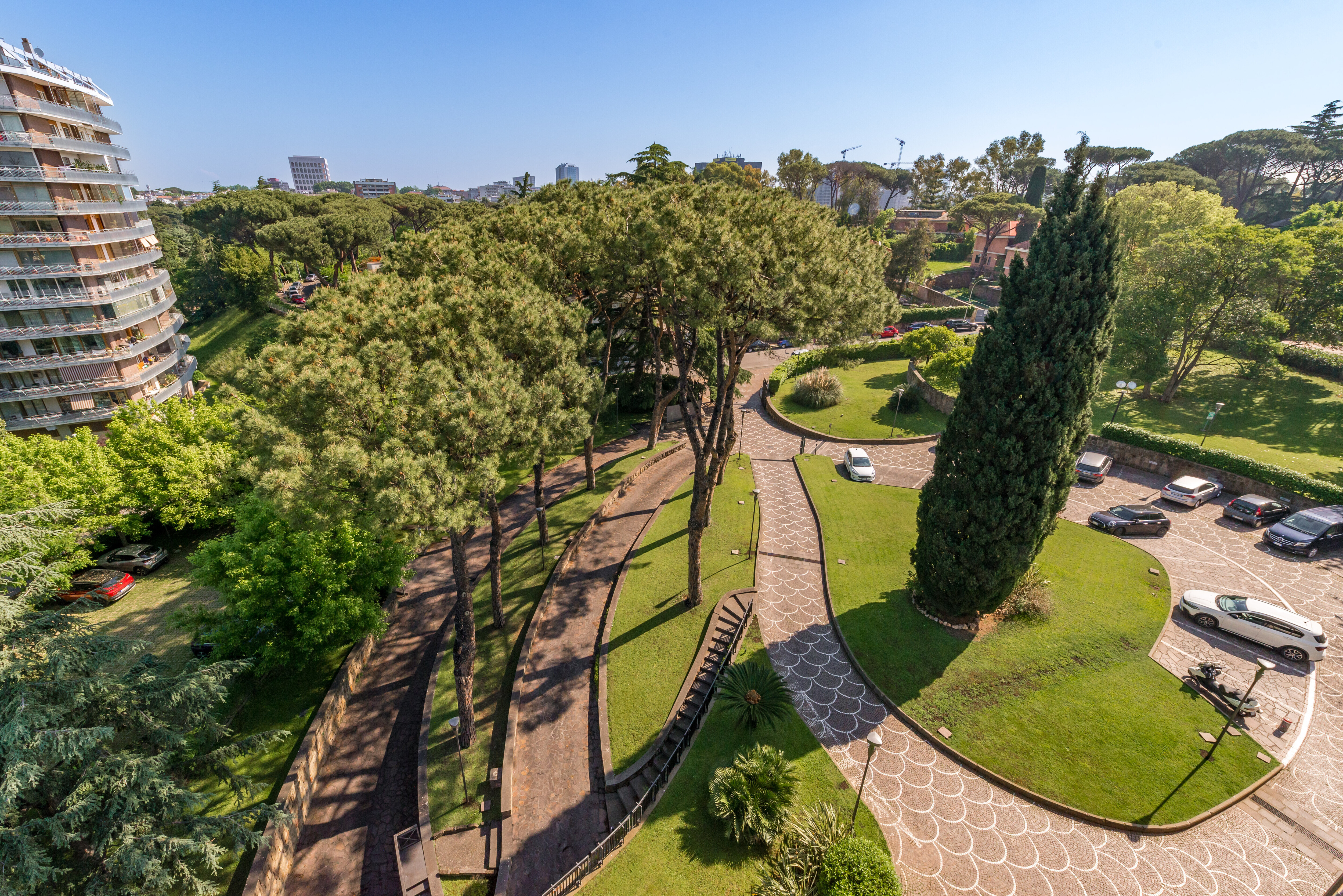 A breve distanza dal Laghetto e dai complessi direzionali della "Nuvola" e del "Palazzo dei Congressi", l'immobile si inserisce in un contesto di tipo misto: direzionale e residenziale immerso nel verde. I collegamenti sono garantiti dalla linea "B" della metropolitana con le fermate "Eur Palasport" ed "Eur Fermi" che distano 1 Km circa, oltre che dai mezzi di superficie. Ottimo l'accesso veicolare mediante le vie Cristoforo Colombo, Via del Mare, Via Laurentina e l’autostrada Roma-Fiumicino.