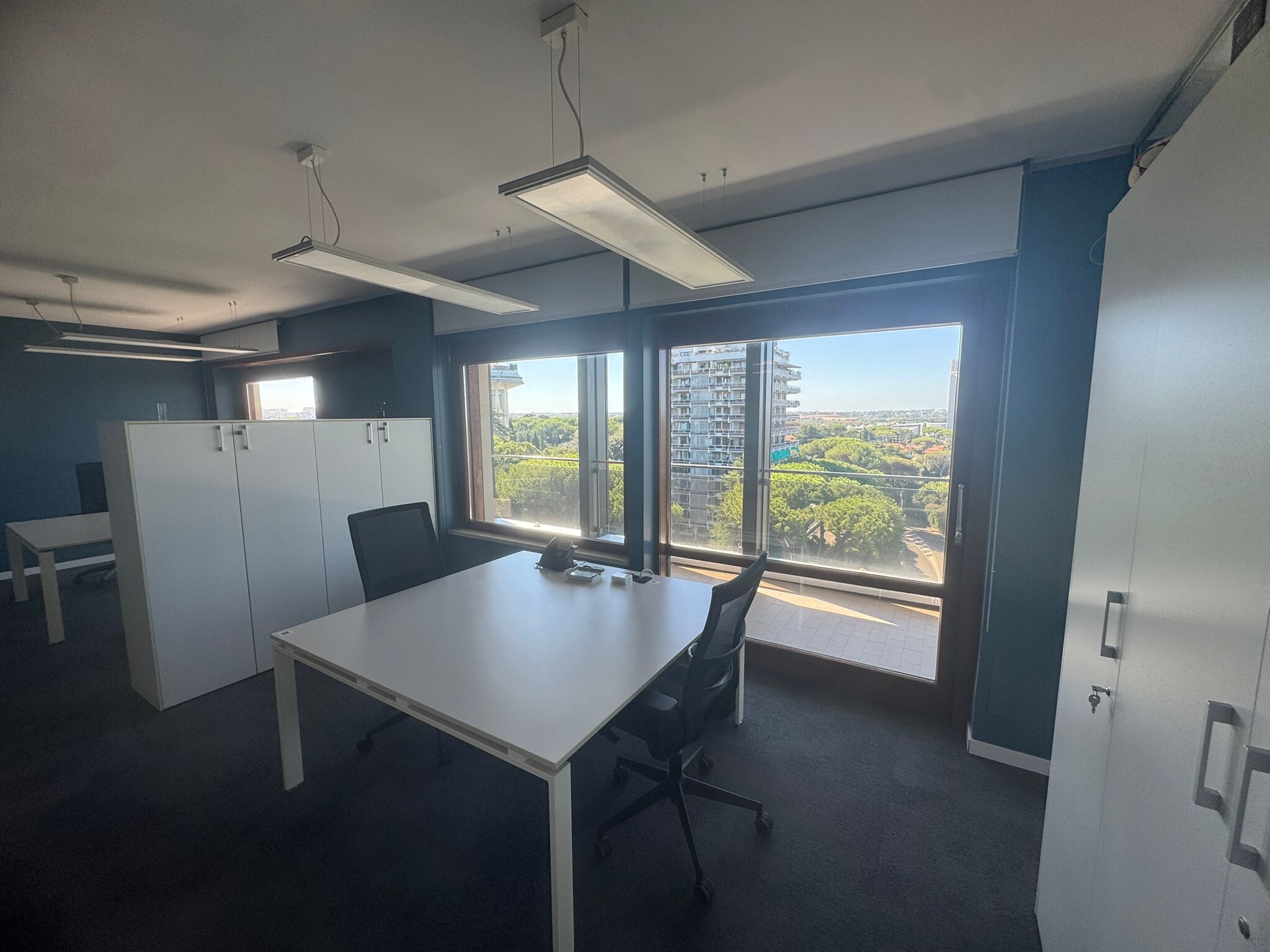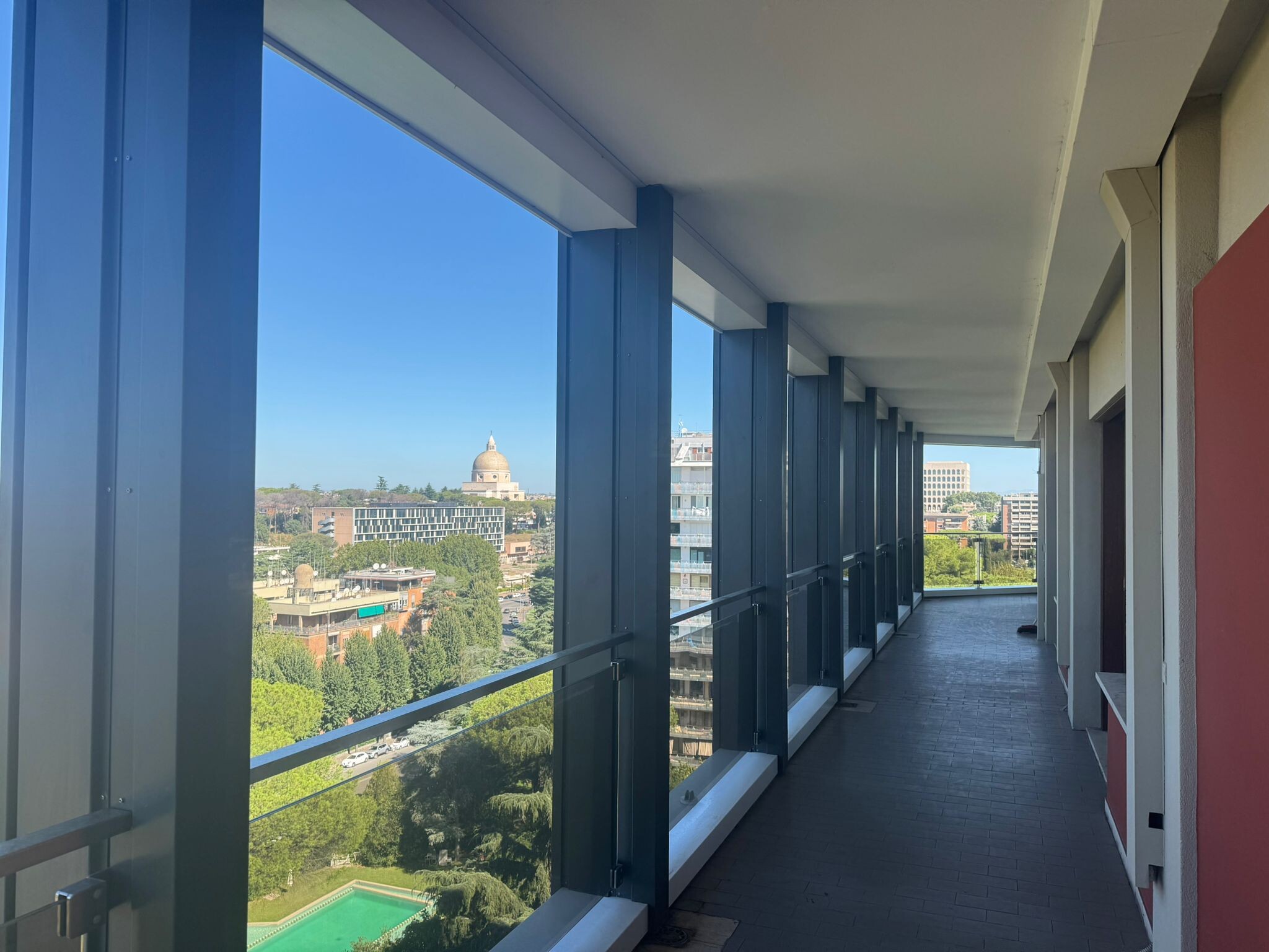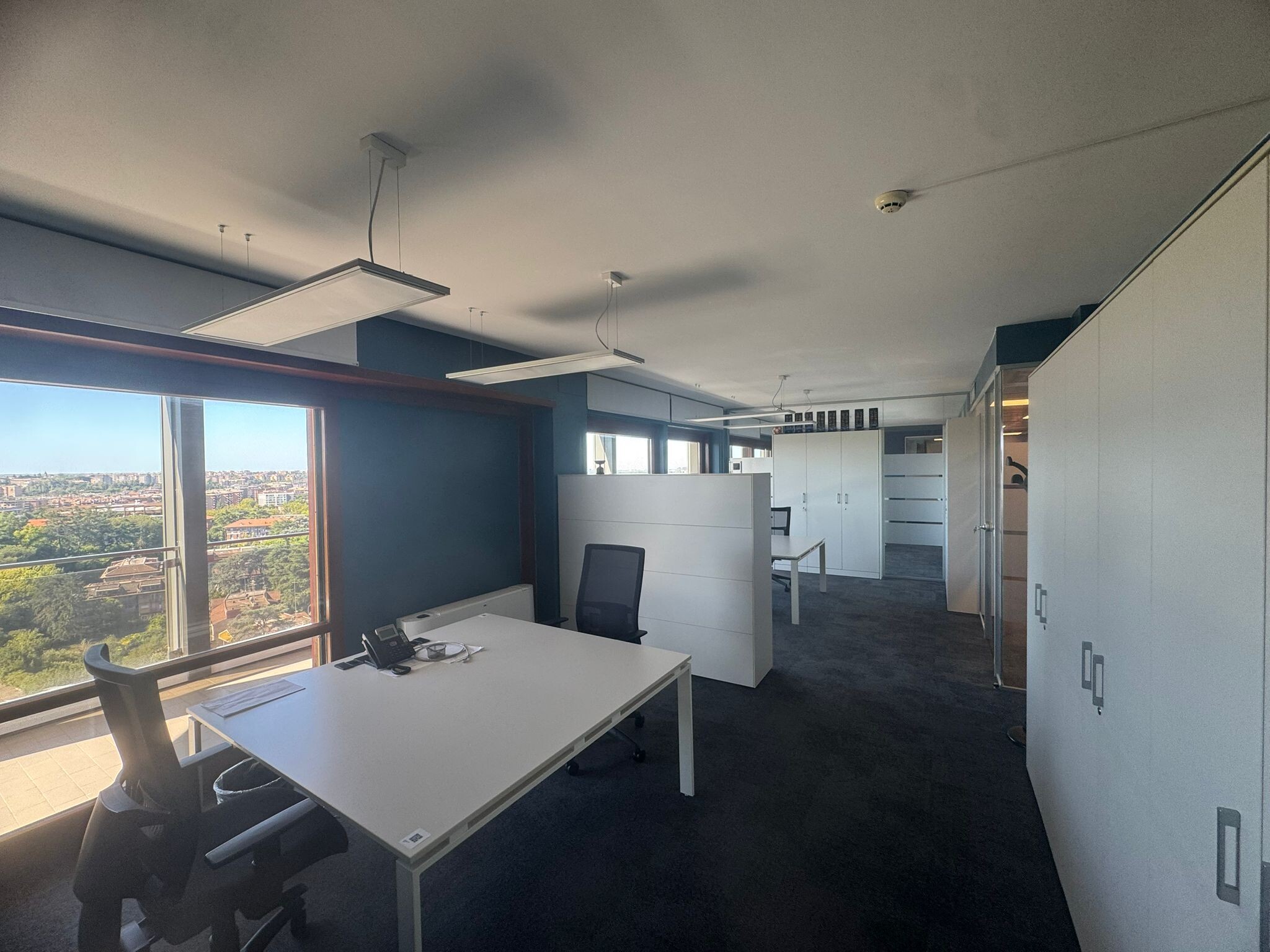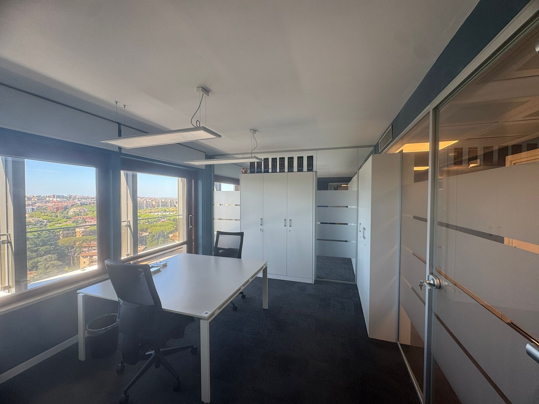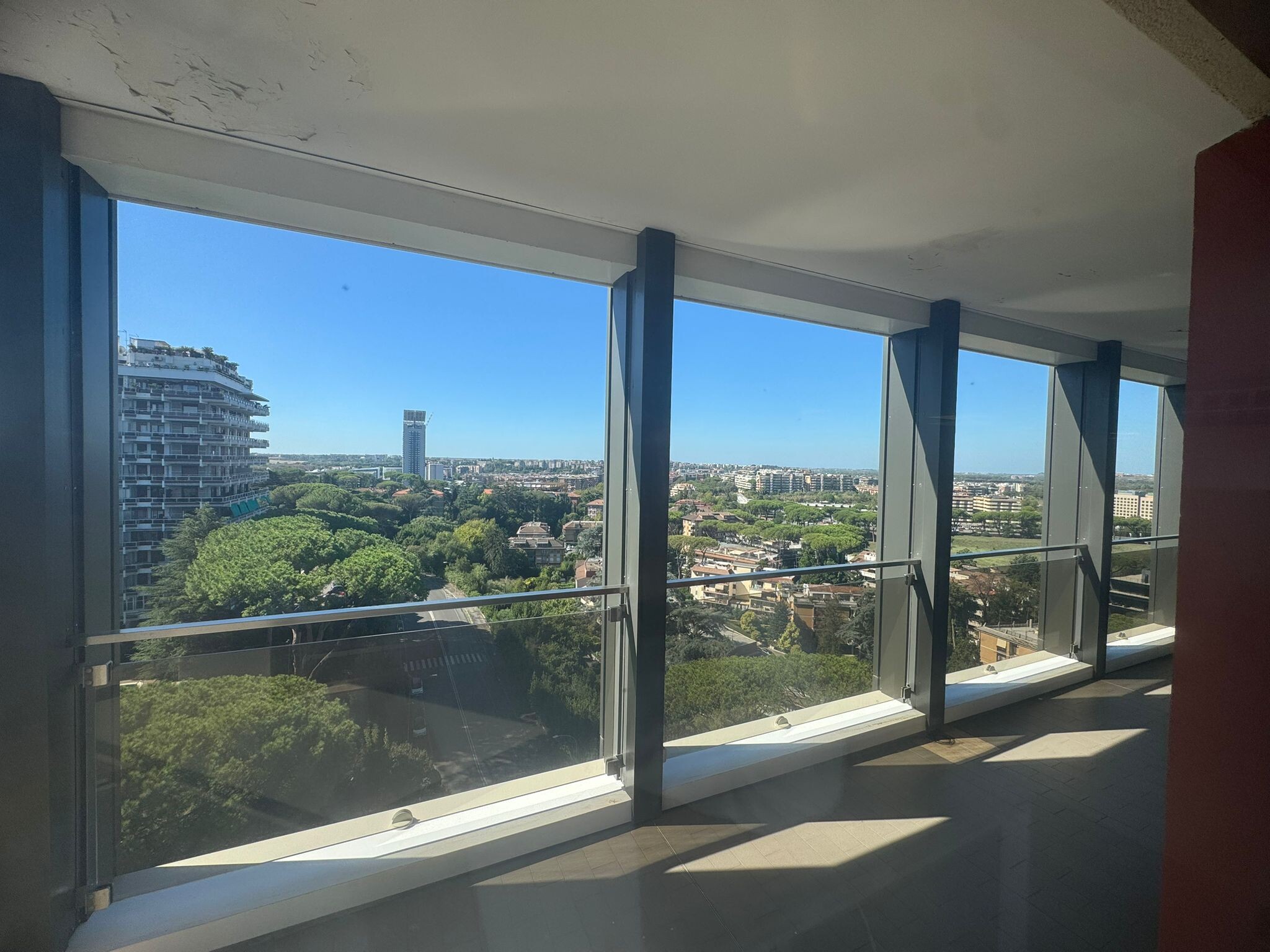 Ufficio ubicato all'interno di un prestigioso edificio direzionale sviluppato su dodici piani con portineria, ascensori e circondato da un’ampia area verde recintata dotata di parcheggi di pertinenza. Gli spazi ubicati all'ultimo piano beneficiano di una vista a 360° sulla città con un skyline continuo su tutti i fronti. La distribuzione interna è anulare e si sviluppa attorno ad un nucleo centrale che contiene il corpo scale e doppi corpi ascensore. La struttura interna è a pilastri con possibilità di creare grandi open space o ambienti chiusi secondo le esigenze. I fronti sono continui e finestrati e garantiscono spazi luminosi e flessibili. Tutti i piani sono serviti da 2 ascensori principali, 1 secondario ed un corpo scala.