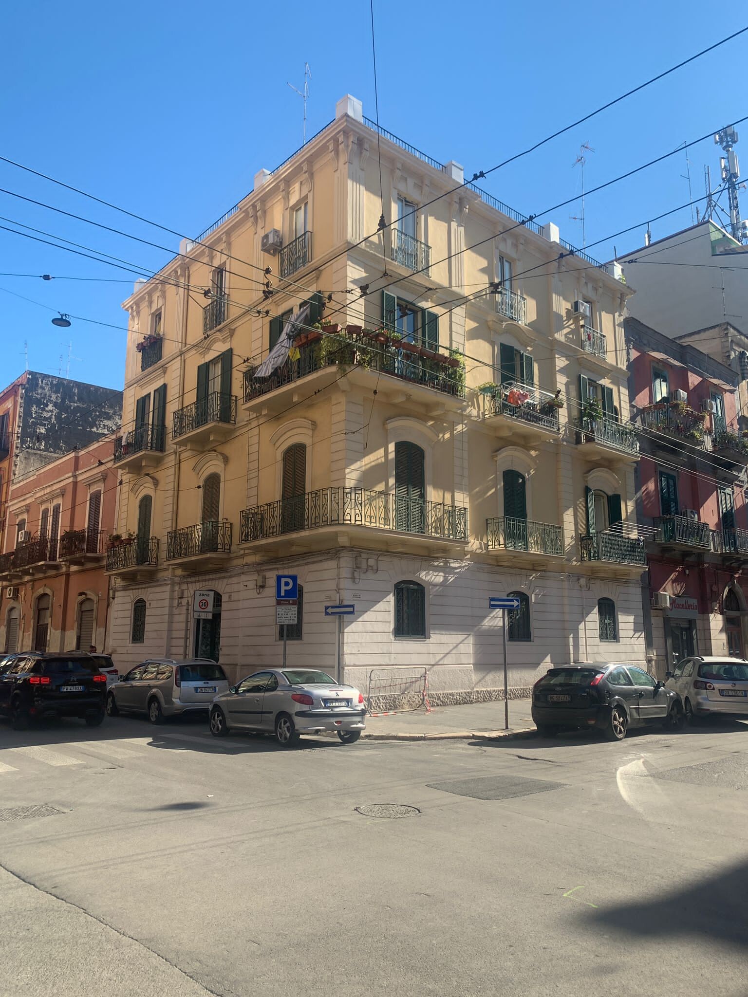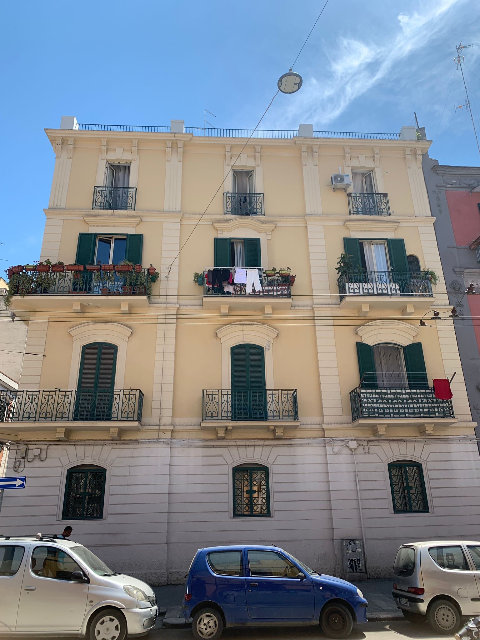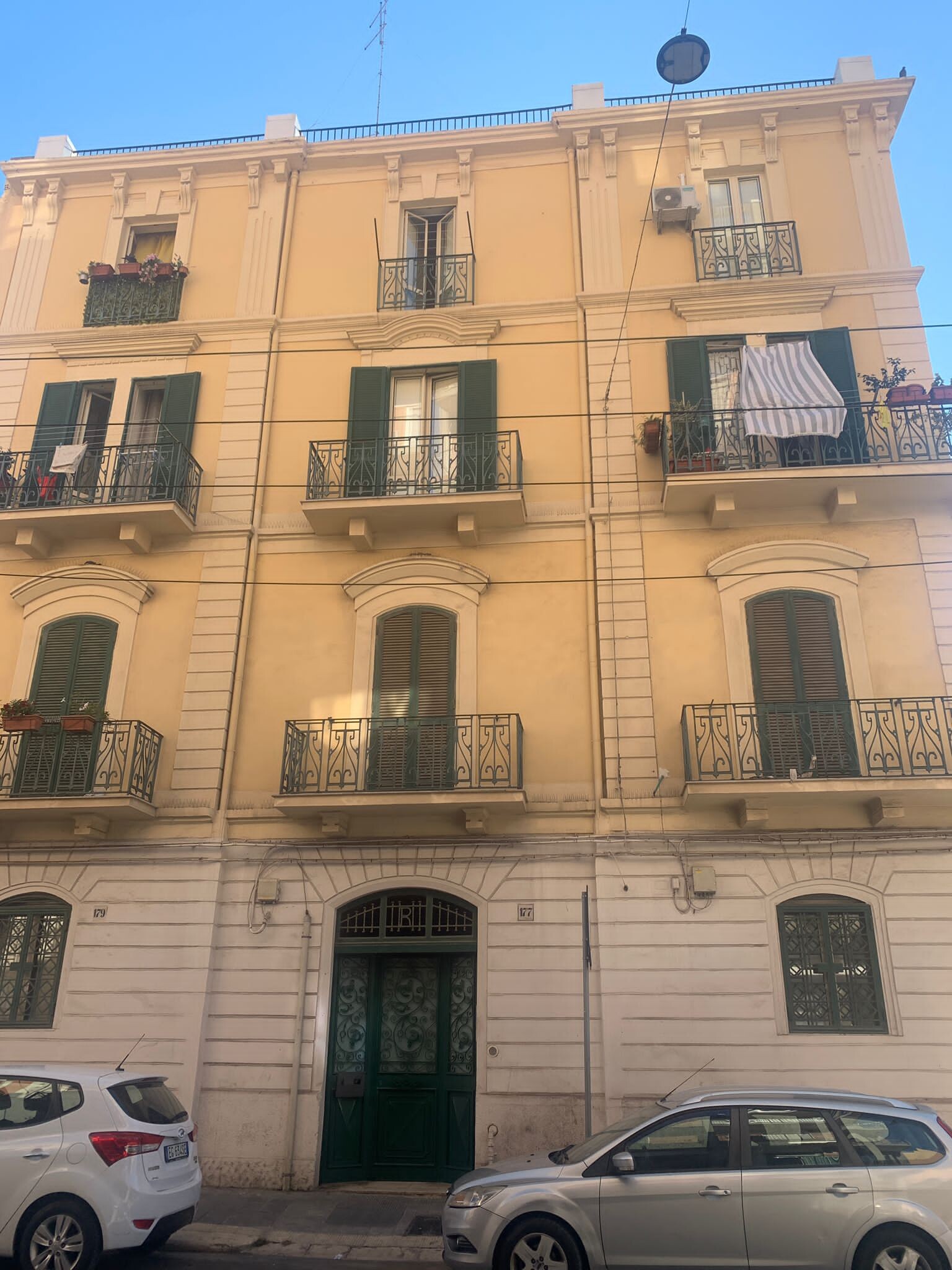 La facciata si presenta in buono stato manutentivo dati i recenti lavori di manutenzione eseguiti. L’elemento che contraddistingue la palazzina sono le ringhiere in ferro battuto con decorazioni floreali. Internamente gli appartamenti si presentano in ottimo stato con la presenza di alcune rifiniture quali infissi esterni in alluminio con vetro camera, pavimentazione in ceramica, impianto elettrico ed idrico, riscaldamento autonomo a gas e porta blindata.
