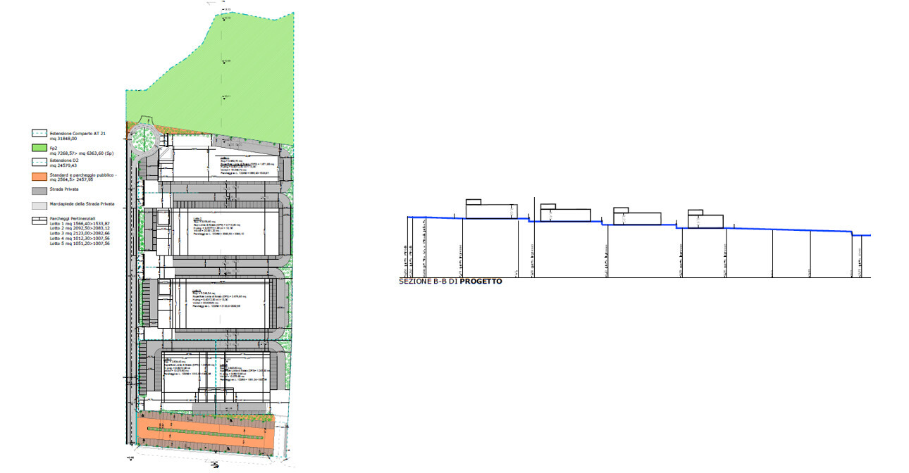 Il progetto, con PUA già approvato riguarda la realizzazione di cinque lotti con una superficie che varia dai 5mila mq a circa 3mila mq. Tuttavia, è anche possibile la rimodulazione dell’intervento cambiando le superfici dei lotti in base alle esigenze degli investitori.