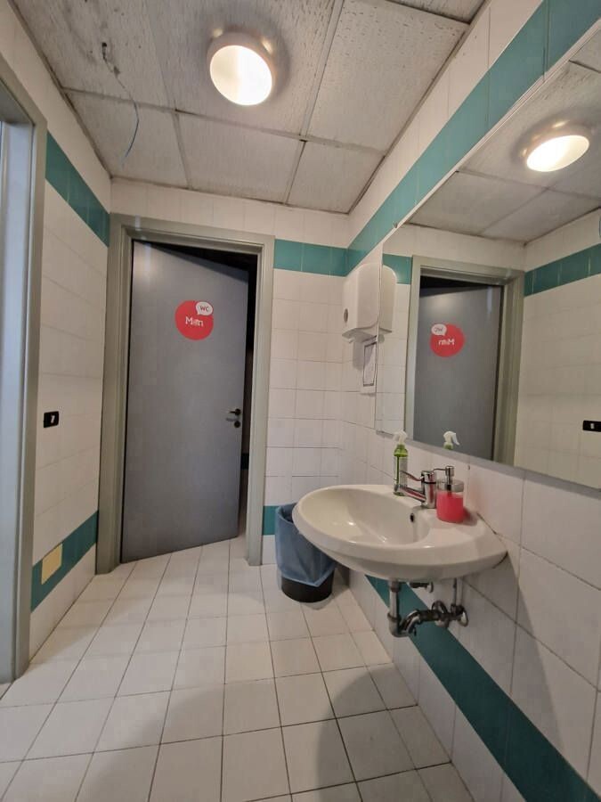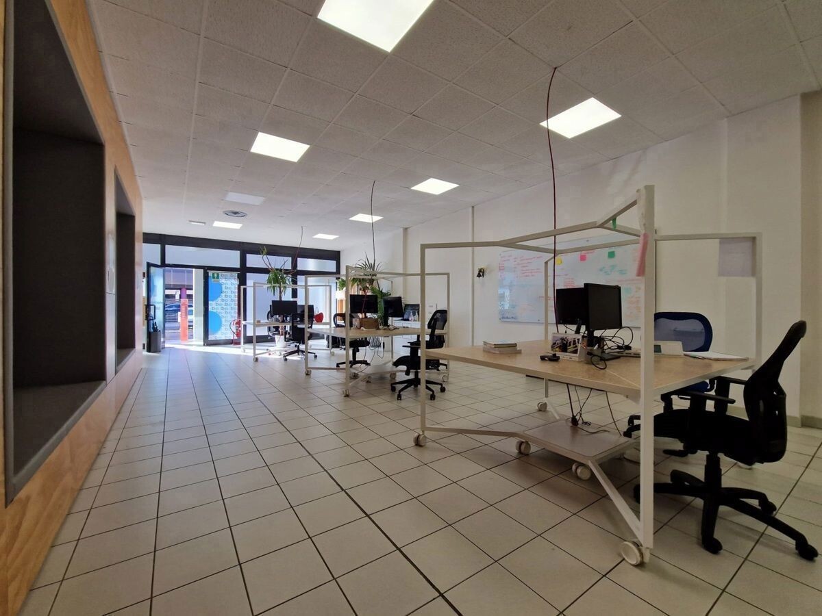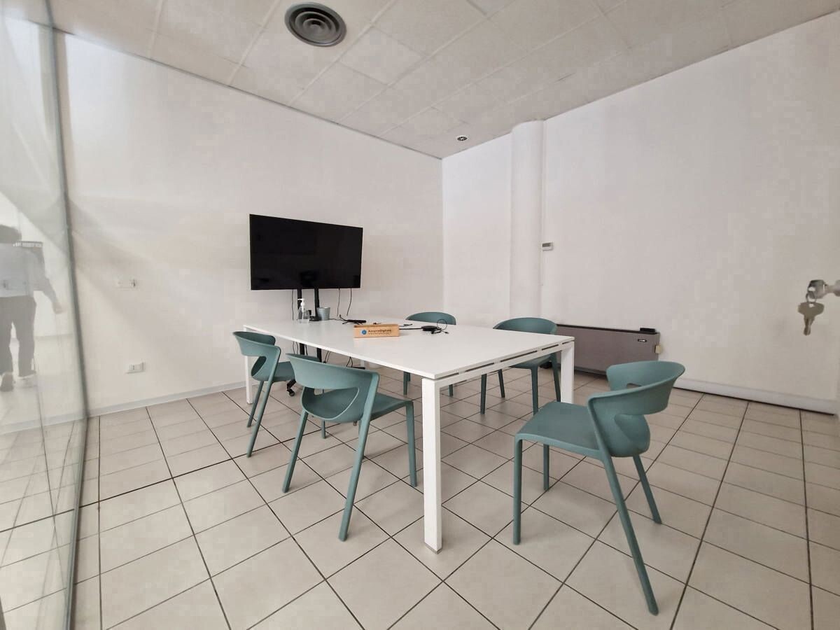Lo spazio commerciale è stato ristrutturato nel 2020 suddividendo gli ambienti con pareti in cristallo, per mantenere privacy e illuminazione naturale o con pannelli in cartongesso.